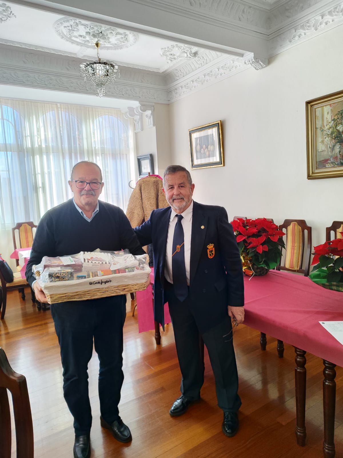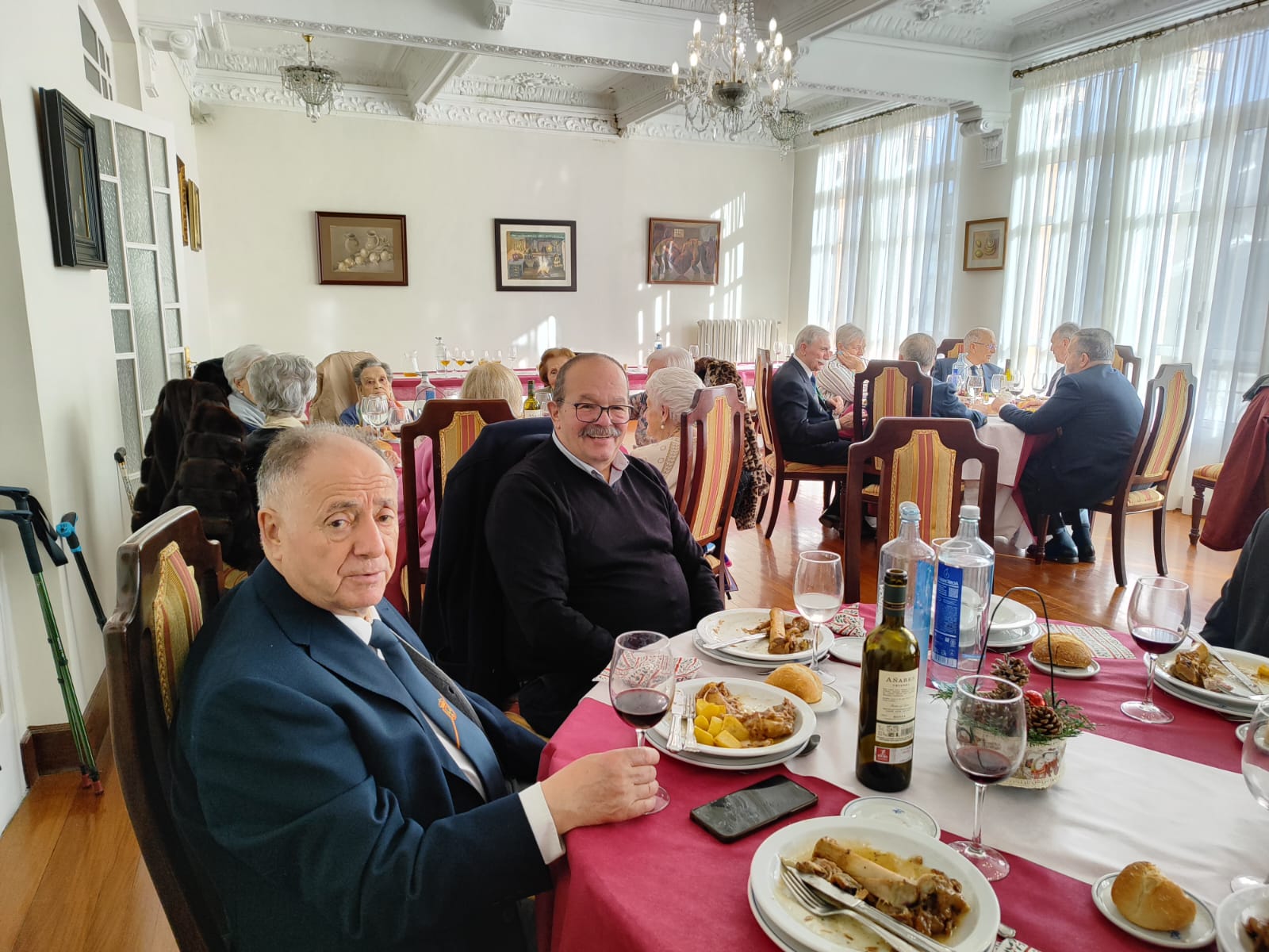 Este pasado 10 de diciembre la Delegación de Ferrol reunió a un grupo de sus asociados para celebrar la tradicional comida de Navidad. Se realizó en el Casino Ferrolano, en el emblemático edificio que alberga esa sociedad desde hace ahora un siglo, obra del afamado arquitecto Ucha, y que es una joya de la celebrada arquitectura modernista del Barrio de la Magdalena. En un excelente ambiente tuvimos el almuerzo y la ya tradicional rifa de cestas y entrega de obsequio a los socios que entran en la selecta categoría de nonagenarios. Con este acto, y la próxima asistencia al concierto y felicitación de Navidad en el Arsenal, a la que hemos sido invitados cerramos este año. Con nuestros mejores deseos de una feliz Navidad y un mejor 2026 para toda la Real Hermandad.